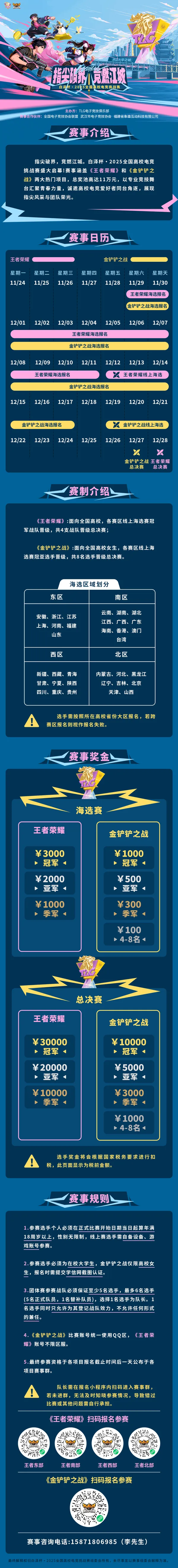 此刻,我们面向全国高校发出集结令——召唤每一个心怀电竞梦的你,一起上场,让操作替你说话,为自己的青春而战!让江城的赛场,见证属于你们的荣光!本次赛事冠军选手可获得签约TLG电竞俱乐部机会哦。