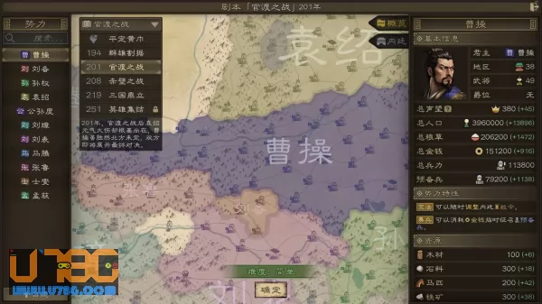 在历史上东汉105个郡国的基础上,游戏还设计了各大资源点,比如陶谦的琅琊盐场、孔融的北海渔场以及中原、淮南、河北的平原产粮区。通过控制这些关键资源产区,各个势力将在经济上获得极大增益,来还原历史中为何各大势力都急于攻占荆州、徐州这样的鱼米之乡。