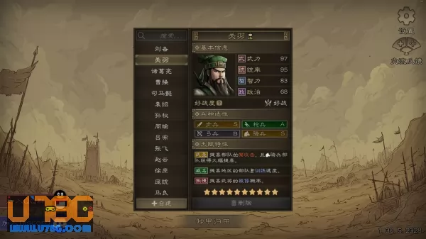 不同武将的区分,除了常见的属性、性格与兵种适性外,游戏还为几乎每个武将都设计了专门的天赋特性,让玩家既可以用关羽张飞这样的神将战场开无双,游玩小势力时,也能依靠臧霸、文聘这样的二流武将,通过运营和策略与强大敌人一战。