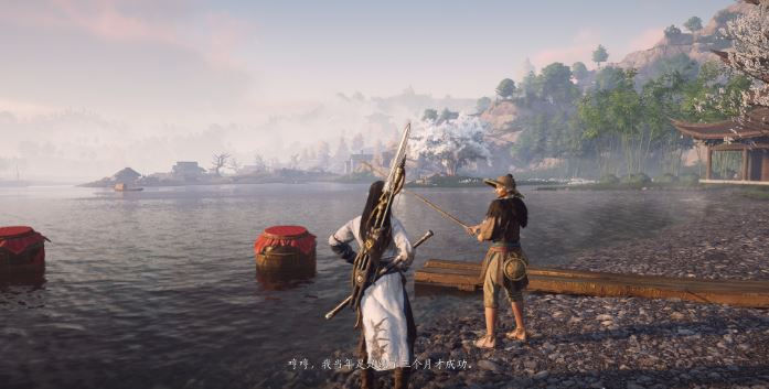 3、远处的两个酒坛需要使用二段跳配冲刺,2段跳加冲刺,拿到船上的秘籍就完成了。