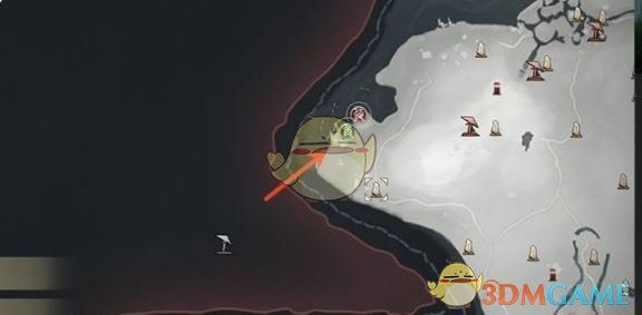 5、停顿一下,朝着对岸右边太树的方向游,游到小地图角色三角形图标跟码头尽头对齐就能够了。