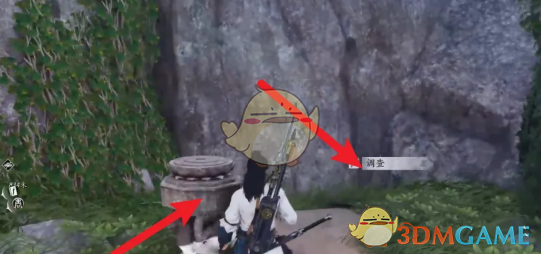 2、来到一个山洞前,在外面找到机关后,点击交互键调查。