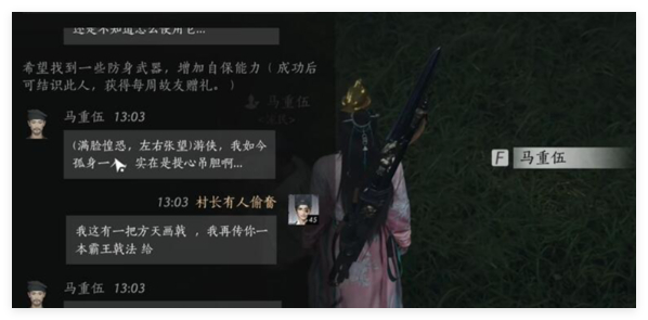 玩家:我这有一把方天画戟 ,我再传你一本霸王戟法给。