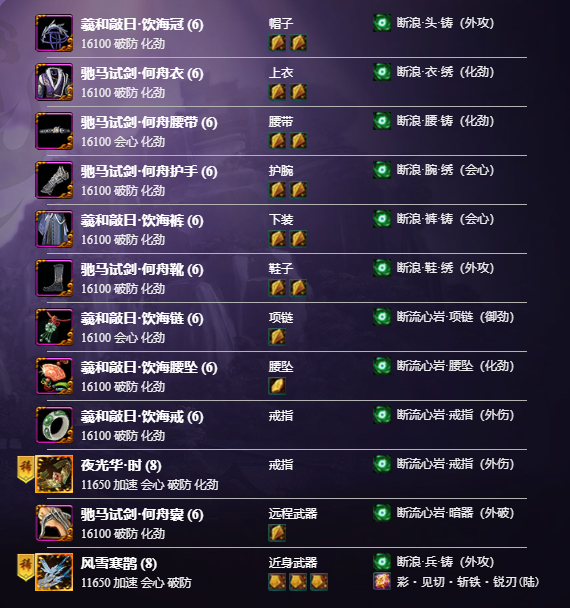 副本中除了小附魔还会掉落大附魔,霸刀作为外功攻击门派,可以利用的大附魔为“伤”。