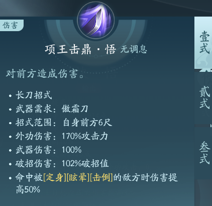 攻击距离要比项王击鼎远,伤害和项王击鼎叁式几乎,但是没有额外控制。PVP点绝篇,PVE点秘章。