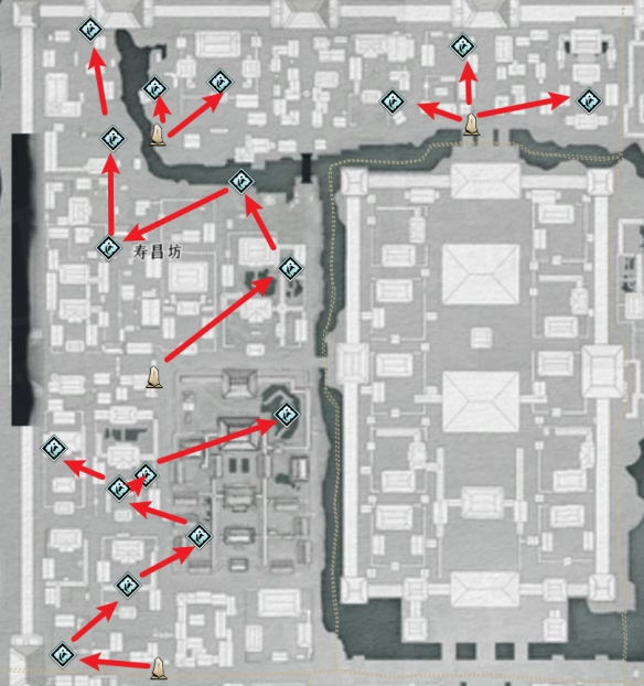 寿昌坊附近有17个蹊跷可收集,位置与路线图如下。