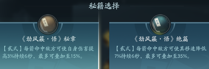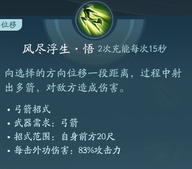 射出箭矢普攻,一共有两段技能。PVP能够点绝篇,PVE点秘章增伤