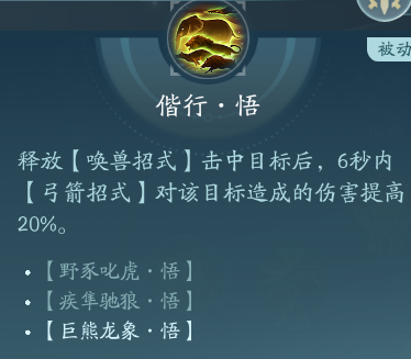 野豕叱虎搭配疾隼驰狼能打出高额的流血伤害,作为这套PVP的主输出,也要善于利用门派轻功中的伤害技能,这也算万灵的一个特色技能。