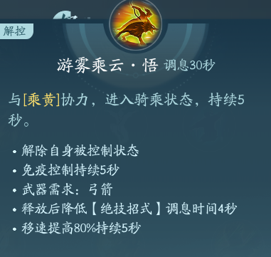 释放技能能够骑在乘黄身上解控并免控5s。PVP点绝篇,PVE点秘章。