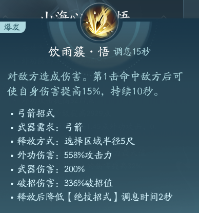 是个范围伤害,第一击射中后也会增伤15%。PVP点绝篇,PVE点秘章。