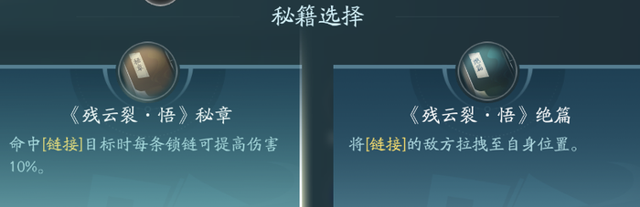 普攻选取寂洪荒+第二本秘籍(二段命中链接目标减少残云裂cd1s),其余全部选取第一本秘籍(加伤/减少左右手链技能cd)