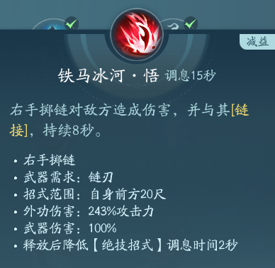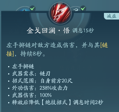 “隐龙诀·悟”施展时,以可变换多重形态的链刃为兵器,攻守兼备