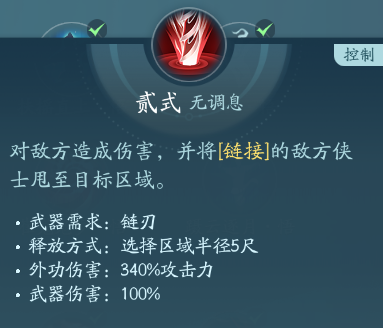 这个技能是位移伤害技能,并且可以控制敌人定身,PVP点绝篇,PVE点秘章