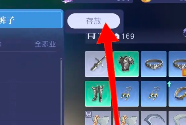 4、点击“存放”按钮,将选中的物品转移至仓库,完成背包减负。