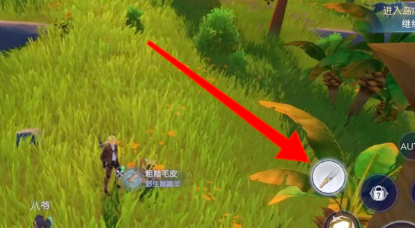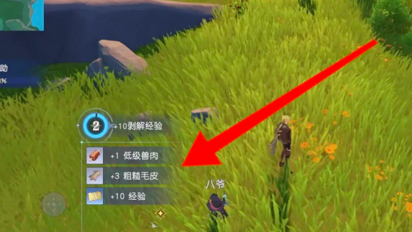 4、靠近已被击败的魔物,点击出现的石刀图标,开始剥解。