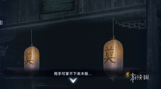 6、点击二楼窗户,用撬棍撬开木板,查看上面的画,需要男主也在这个场景。