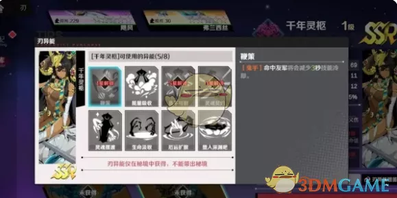 《刃境》千年灵柩技能强度怎么样,详细攻略如下: