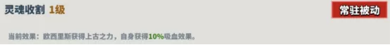 描述:欧西里斯获得上古之力,自身获得10%吸血效果。