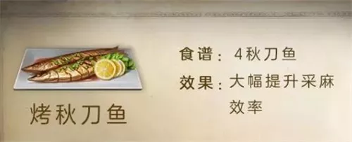 玩家在食用烤秋刀鱼后,能够大幅提高个体的采麻效果。