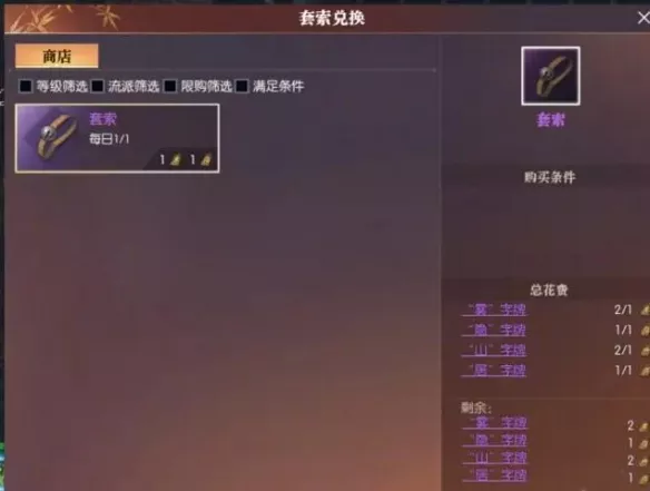 2、紧接着,与【杨绵绵】交谈并获取字牌,随后将这些字牌——【雾】、【隐】、【山】、【居】——组建成一根套索。