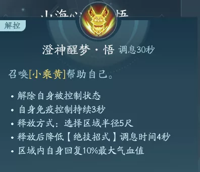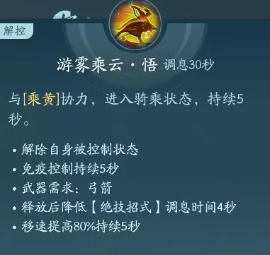 释放技能可行骑在乘黄身上解控并免控5s。PVP点绝篇,PVE点秘章。
