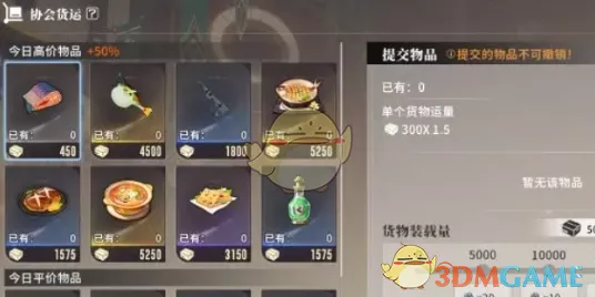 货运任务,只需上交一些物品,装载量到达5000即可拿到一定的协会资金和协会贡献值材料。