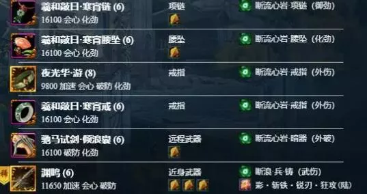 小橙武刀宗配装,有小橙武和橙戒的加速所以其他附魔不用打加速以免加速溢出,竞技场4件套爆发更强节奏也会很快,会心堆到35左右伤害就是可以的。