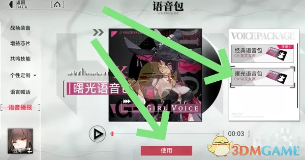 3、接下来在语音包页面,找到中文的语音包,点击使用后即可完成切换;