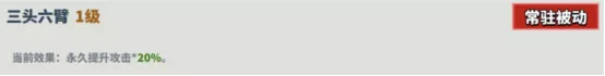 特点:全属性增强,哪吒的生命、攻击、暴击都会得到30%的提高,从生存、输出和伤害爆发三个要点方面,使得在战斗开始阶段就能得到极大优势。