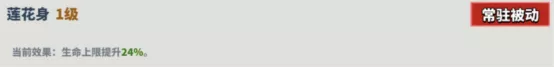 描述:哪吒对金刚不坏之躯的力量发挥到达极致!自身全部属性得到大幅度增强,进入战斗后生命、攻击、暴击各增加30%。