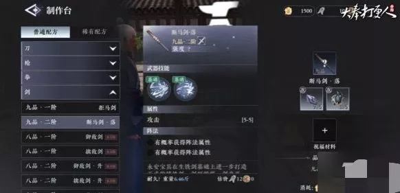 随着税银案的推进完成会解锁生产一类的副业,这时候我们就可以找到工匠孙师傅进行对话拜他为师,学习他锻造的手艺,完成系统要求的任务就可以取得基础的配方和制作手艺。配方有的我们看一下手上的材料够不够,不足的话就要去采集,基础锻造须要的矿石大家可以去藏金山采取,采集也是分为等级的,你锻炼的刀好须要采集的物品品质就更高,所以采集的等级大家也要同步跟上,如果须要特殊材料可以做指定的任务或者去商店,材料够了回到制作台开始做就OK了,还有武器拍卖行。