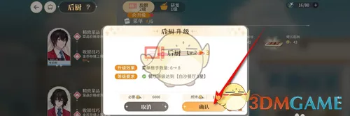 4、后厨的升级须要满足条件,玩家的条件满足后点击确认;
