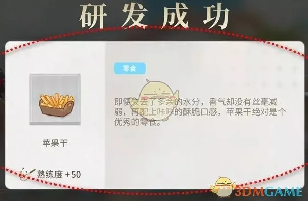 4、等待研发完成后,即可获得苹果干这个菜品;