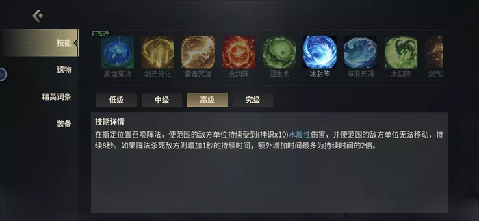 ②前期主动技能用冰封阵和各种群攻技能,被动技能用毒或者点石成金还有魔池都行。后期必要刷毒和会心一击,有条件天赋就开出四技能,被动用个加神识的和会心一击选一个,必带毒,主动用心动和冰封。