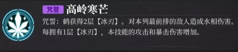 咒誓:鹤拿到2层【冰刃】。对本列最前排的敌人造成水相伤害每拥有1层【冰刃】,本技能的攻击和暴击伤害增加。