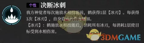 【冰刃】:鹤施放水相技能后,消耗所有冰刃,每消耗1层使目标受到水相伤害。