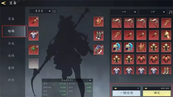 装备更新完成之后去装备熔炼界面熔炼不需要的装备,这个熔炼也有另一个意思,就是售卖装备,每日熔炼获得的元宝数量上限是400。