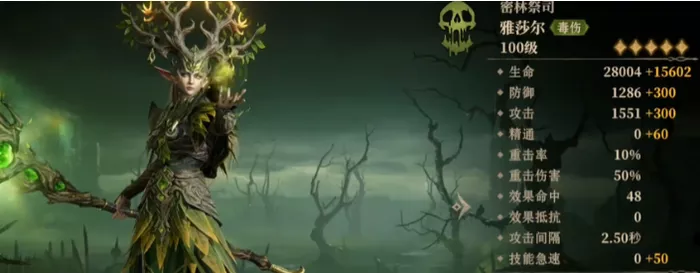 如果说有人能在龙息神寂中创造持续而致命的毒伤伤害,那么密林祭司·雅莎尔必定是榜单上的常客。作为一名拥有极高魔力的德鲁伊,她不仅能通过战技“刚愎”对敌人造成三次毒伤,还能通过强大的被动技能将敌人一举击破。她的“毒伤”效果,允许让敌人每一次受到攻击时都感到致命威胁,毒伤层数越高,造成的伤害也会更加惊人。