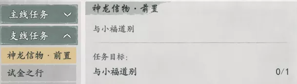 触发条件:完成第三章的神龙信物探索(与小福道别),完成主线任务 四章·断流七(向王二打听飞鱼寨)
