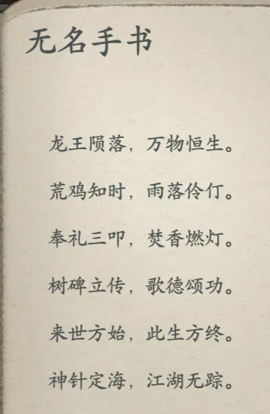 触发条件:须要目前宛州城秘境-天池水牢拿到遗书