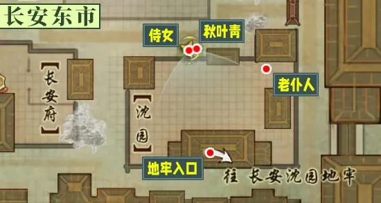 1、奇遇触发后点击小黑狗此后前往长安东市对话【侍女】,之后翻墙进入沈园;