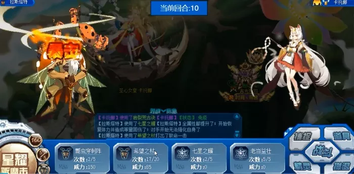 再借助绿火的特性,就可行在速度上快过boss,龙娘的配置在战斗中要努力打出 150 的伤害量,如果幸运地触发了翻倍伤害,那么就有很大的机会直接击杀卡托娜,要是没有触发翻倍,也不用担心,让两只备用的精灵使用先三补刀技能即可完成击杀,为了确保战斗的稳定性还可行适当压体,降低自身的血量,以提高触发一些特殊效果的概率。