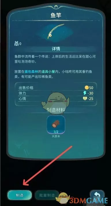 3、接下来在鱼竿页面,点击左下角的制作,消耗木头和金币进行制作;