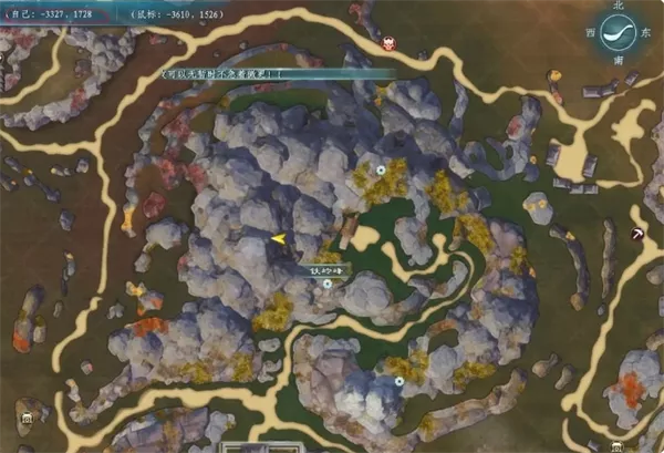 11、苍茫山铁岭峰,石峰间隙,坐标-3327,1728高度438(御剑时按X键下降省事看到)