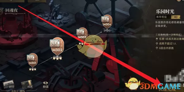 2、随即在主线回魂夜的挑战关卡内,挑选302点击右下角的快速完成;