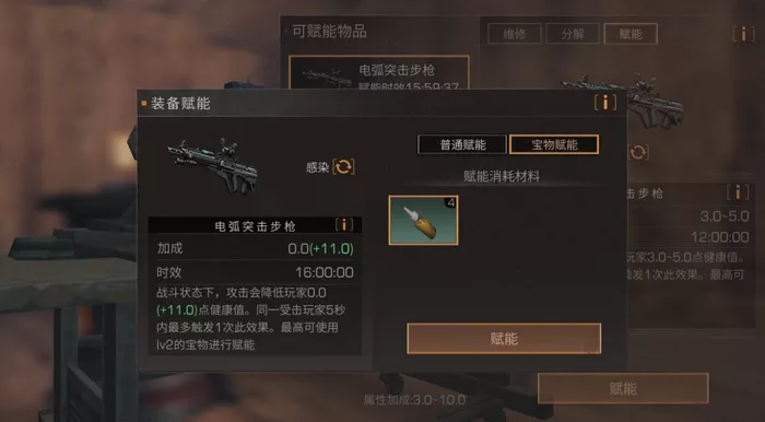 火器燃油可用于枪械类装备的高级赋能,可以直接提高赋能效果至最大值。