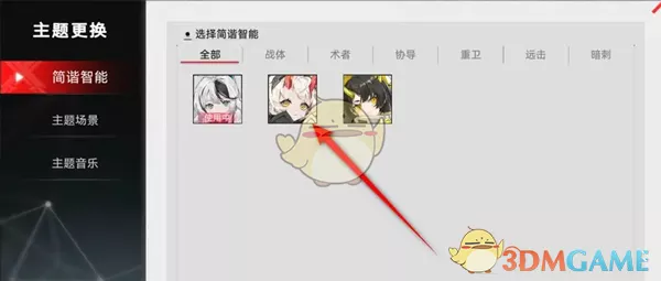 2、紧接着在主题更换页面,点击左侧的角色栏目,挑选心仪角色;