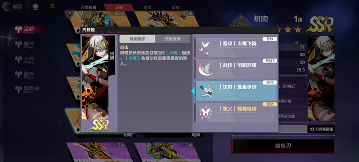 普攻5次触发【焱蝶】,重击召唤烈焰蝶,切刃不会消失