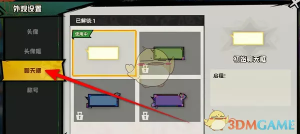 3、来到外观设置页面,点击聊天框,选择已有的聊天框点击使用即可完成设置。