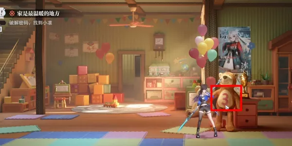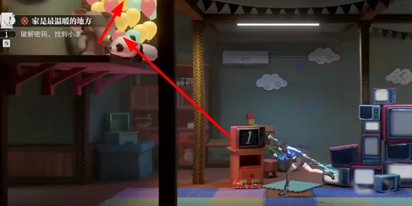 6、至于解密,需要将相应物品上的数字输入。具体来说,第一个气球对应数字2.电视上是1.小熊代表3.海报上的数字是9.所以,最终的密码组成是:2139。